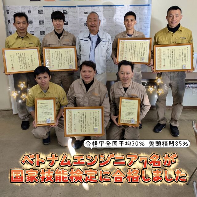 🏅 快挙!鬼頭精器製作所のベトナムエンジニア7名が国家技能検定に合格!