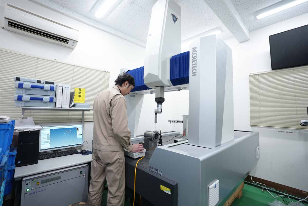 お客様の要求に合わせて、三次元測定機での測定データを製品納入時に添付します。真円度測定機や形状測定機、面粗さ計などその他の測定機でも同様の対応が可能です。